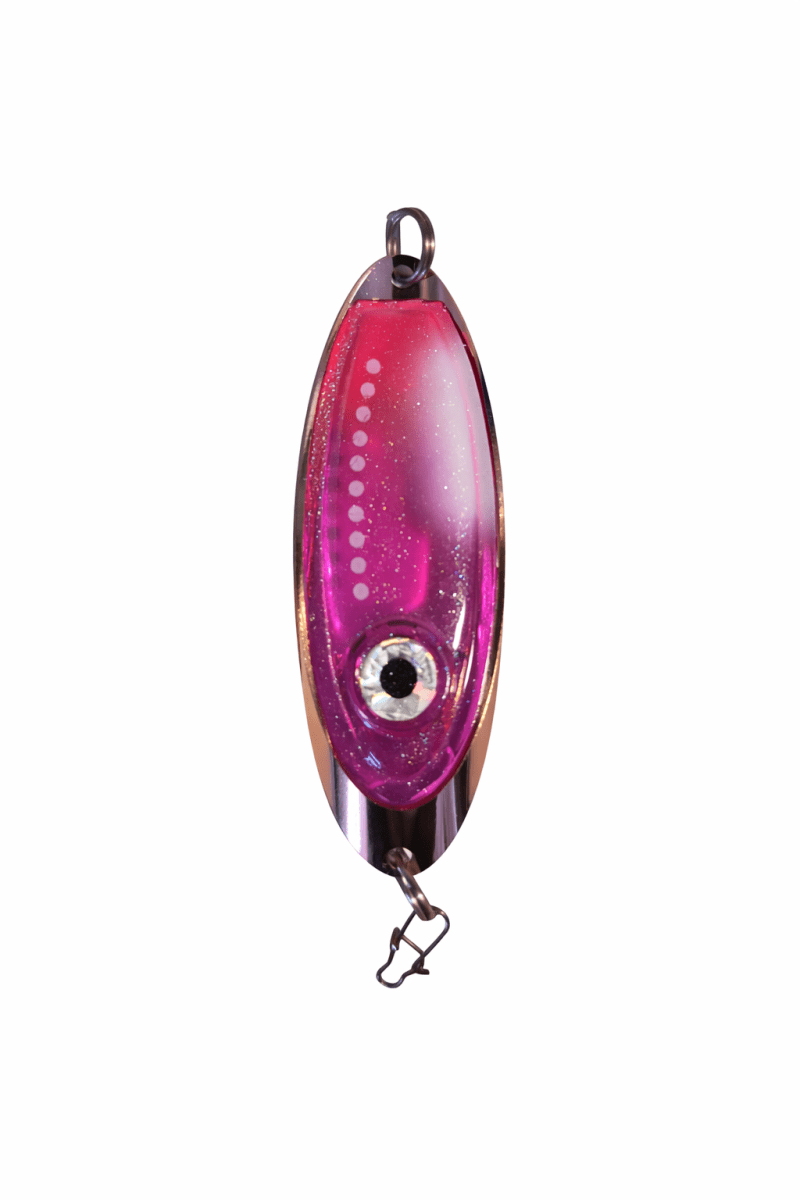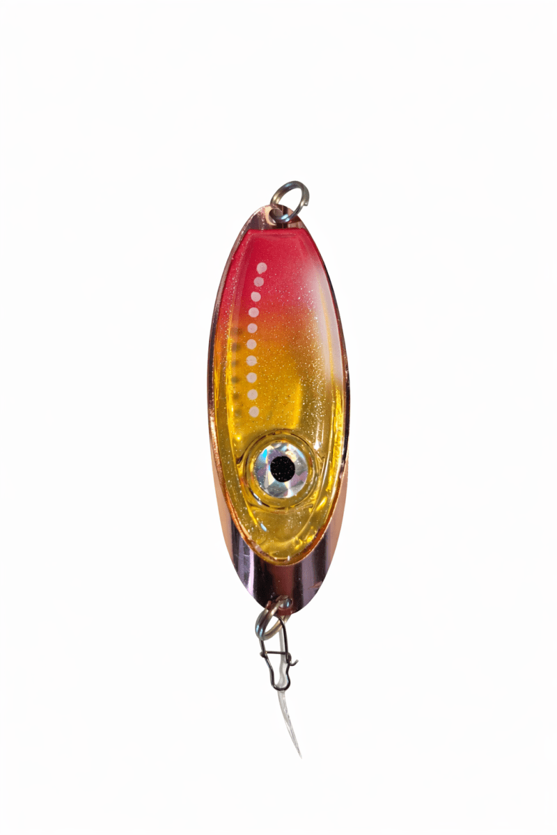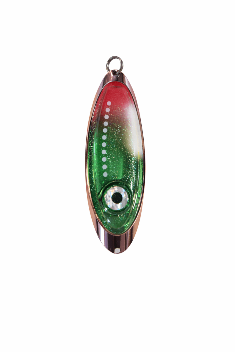 Blänket är större med tunnare metallram och större plastkropp som effektivt sprider blinkögats färger. Kopparfärgad metallram och fem olika färger på plastkroppen med dubbla lysdioder i olika färger erbjuder blänke för olika tillfällen och vatten. Fabrikstillverkning garanterar jämn och hög kvalitet på produkten. Plexi-Ögar levereras komplett med tafs och kvalitetskrok från BKK